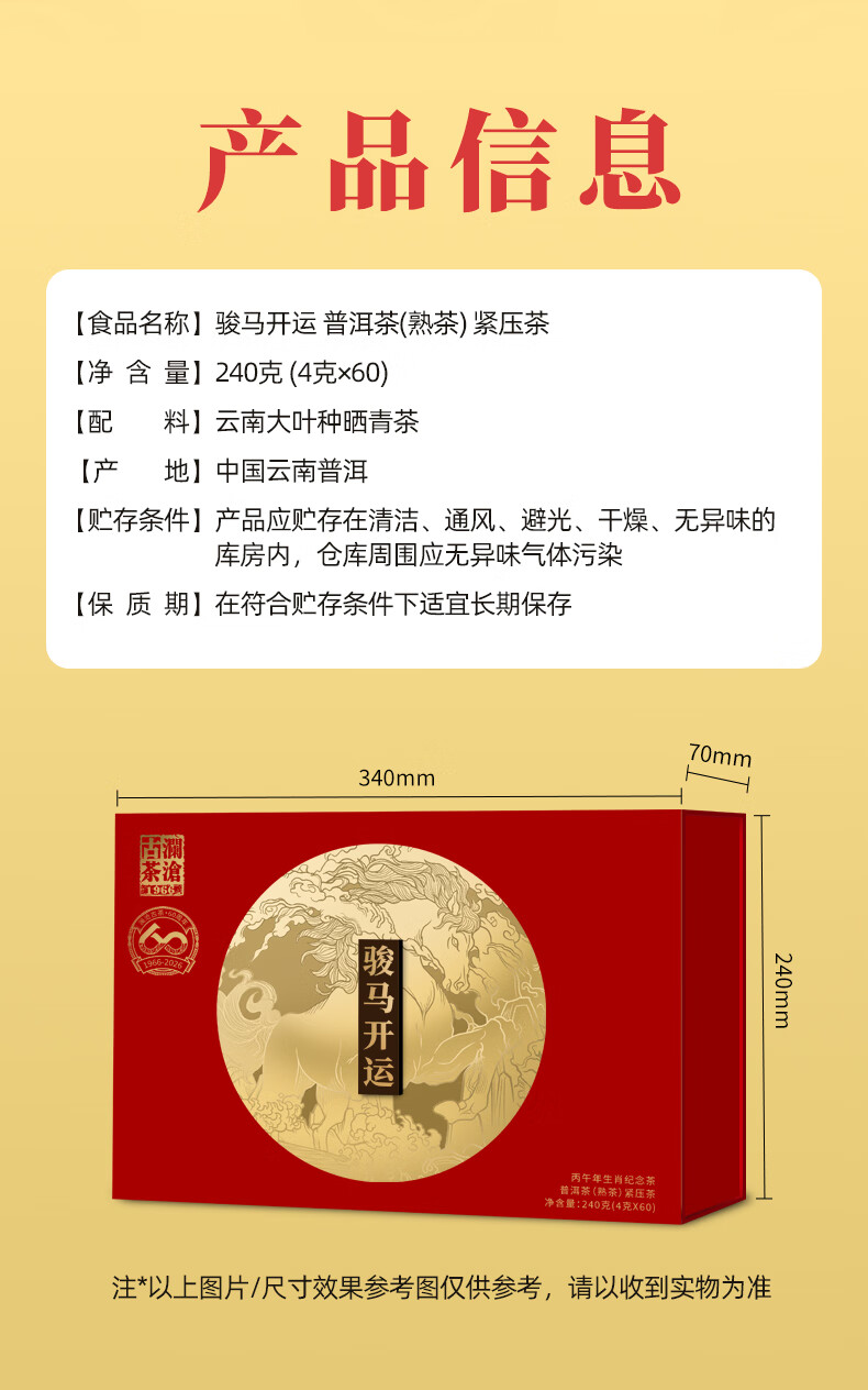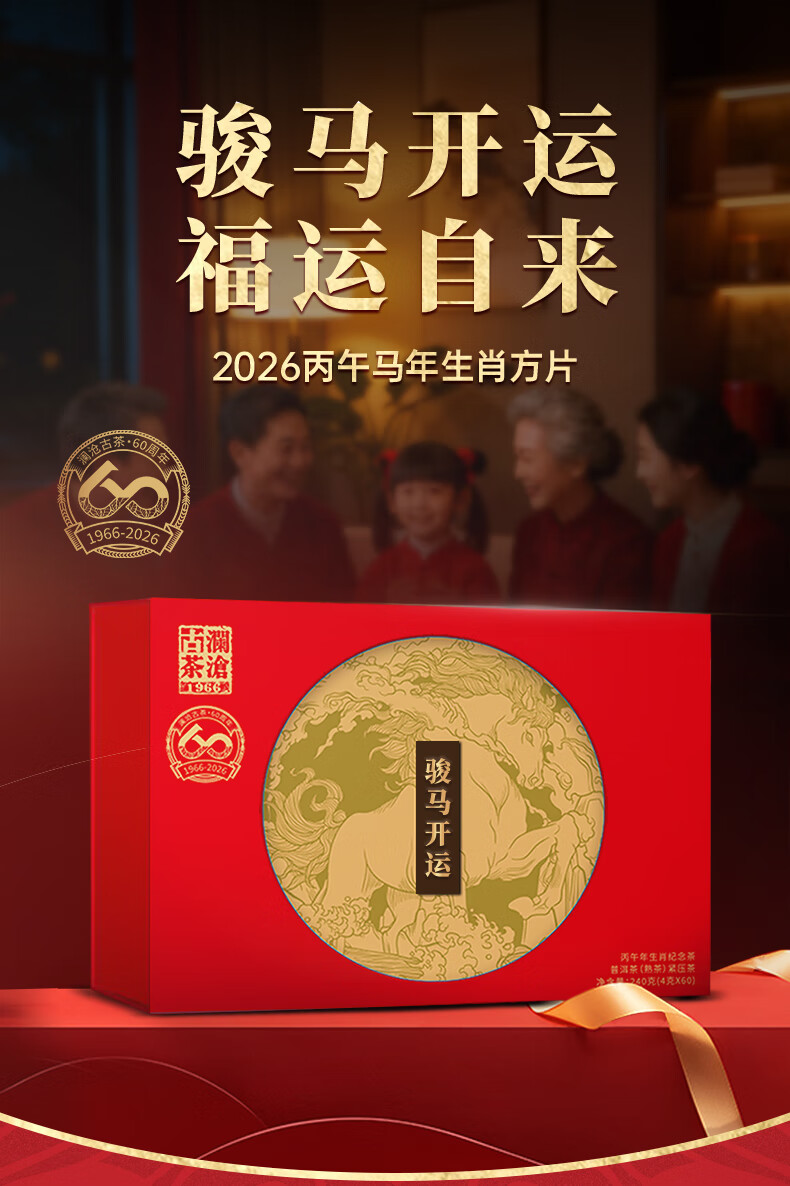 澜沧古茶 2026骏马开运普洱熟茶240g方片礼盒