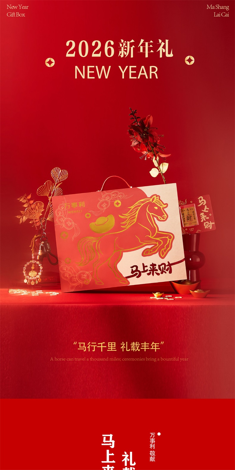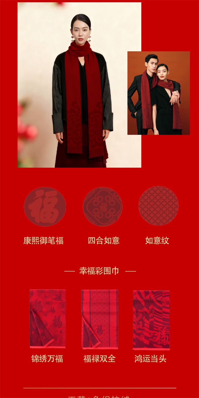 万事利 26新年礼马上来财 福运满满-幸福彩围巾+年历+三件套